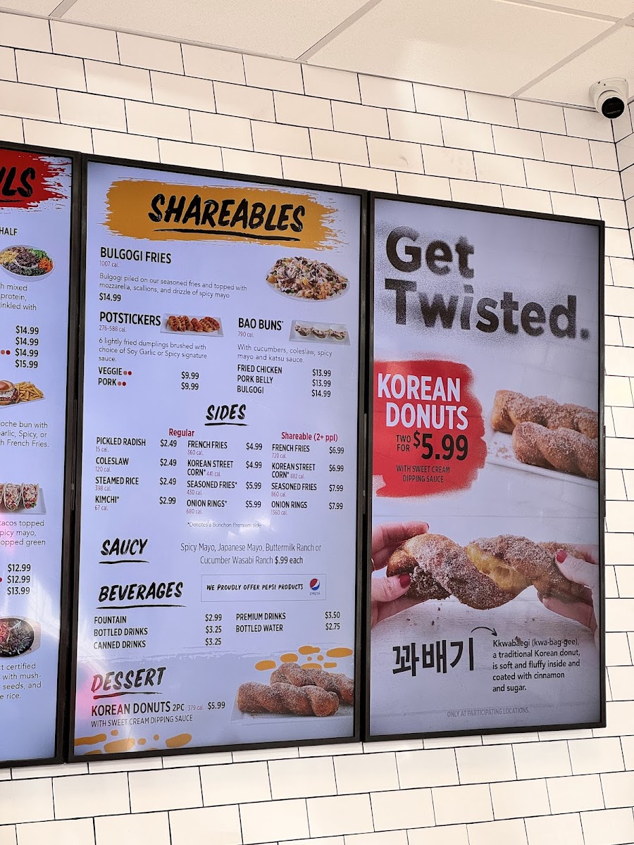 Bulgogi piled on our seasoned fries and topped with mozzarella, scallions and a drizzle of spicy mayo. (*Contains sesame seeds or sesame seed oil.)